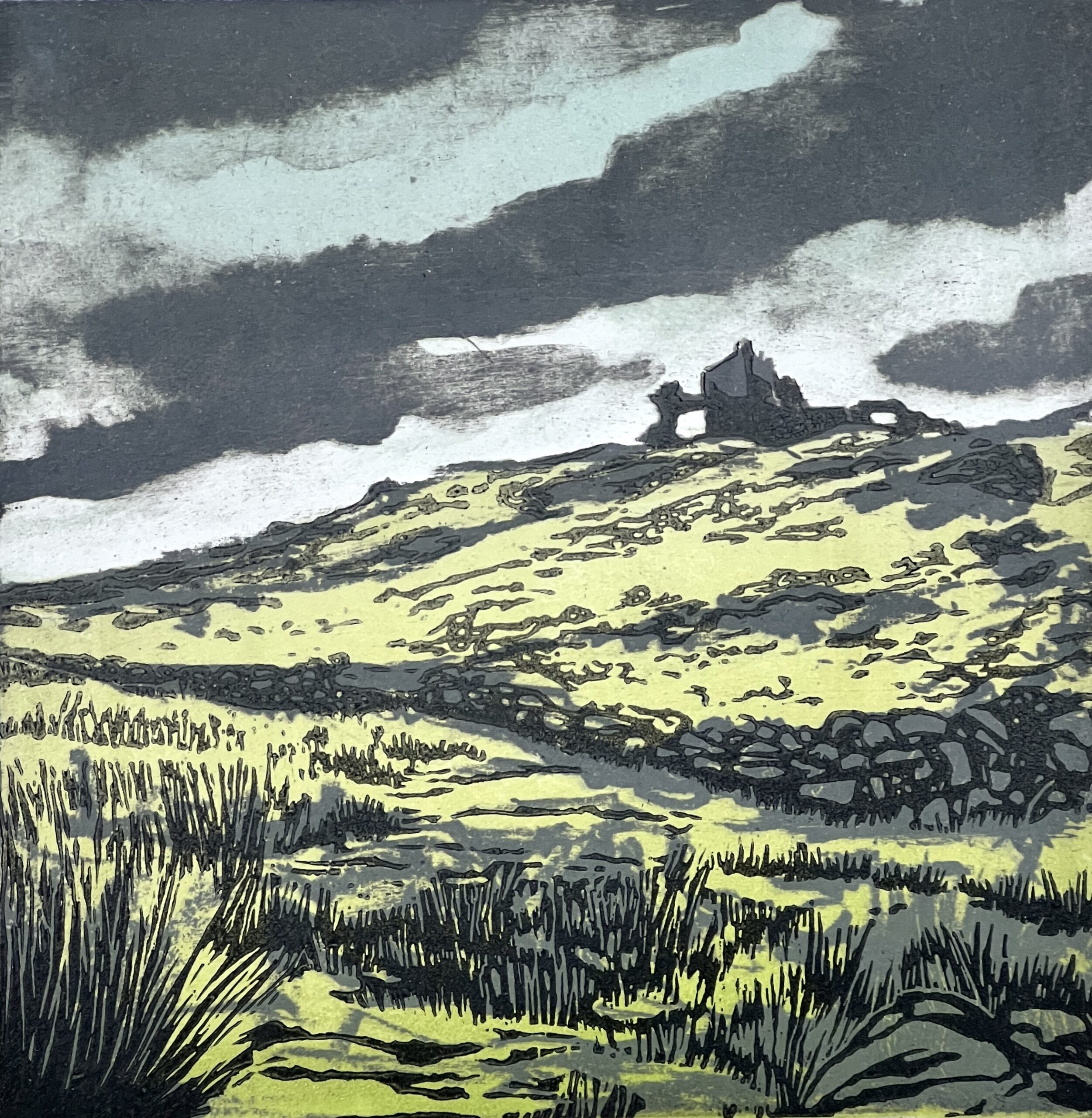 This print is inspired by and features Foggintor Quarry on Dartmoor. Ruined remains stand as a reminder of the passing of time, one of my favourite subjects, and for me the ruins pair perfectly with the wildness of the moor. Dartmoor is a place of extraordinary skies and light and I hope to get to spend more time there. Should you find yourself in the area Foggintor Quarry is well worth a visit. The now flooded quarry workings by the ruins are just beautiful.